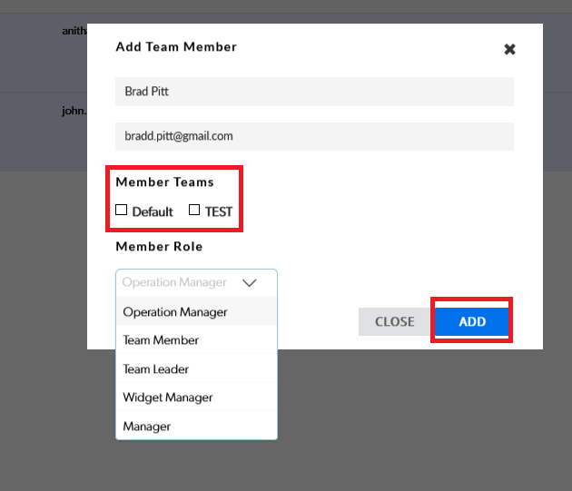 Now, you will be able to add a team member by clicking on the option