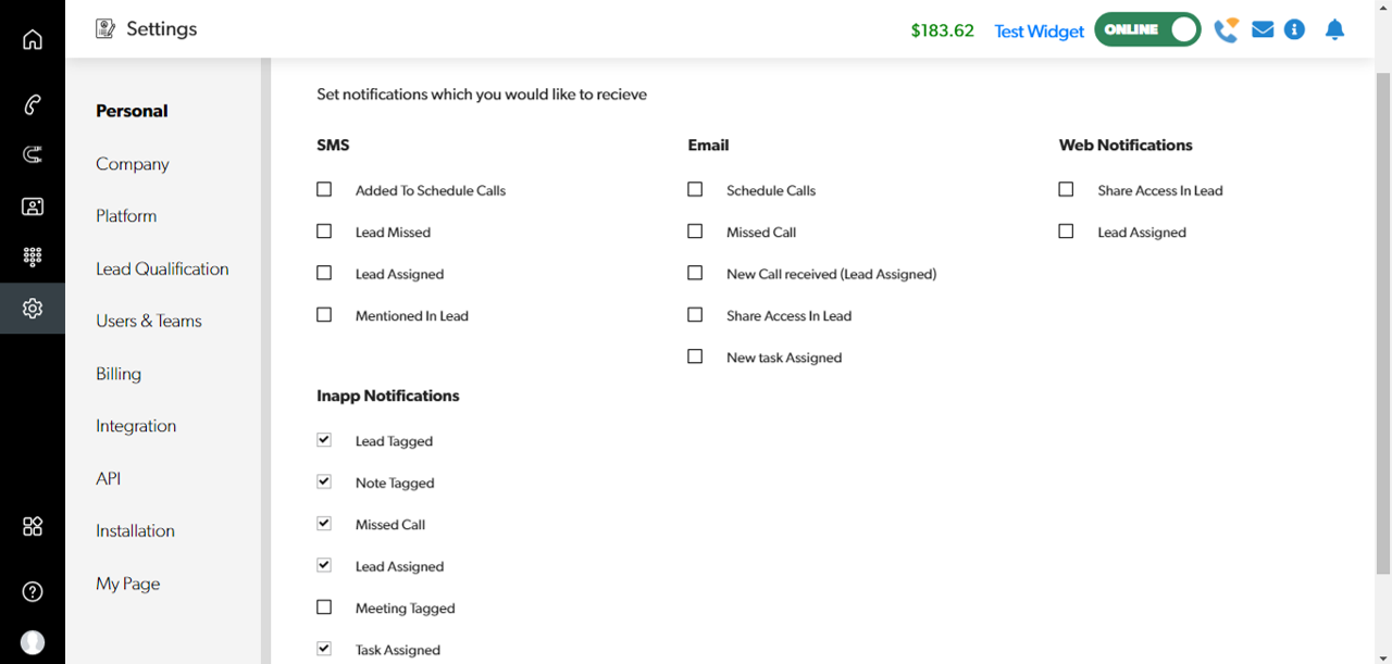 Alerts help keep you in the loop whenever a customer triggers events on the LimeCall Page.