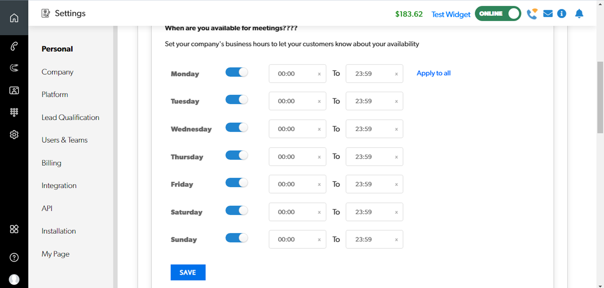 Once the Installation of a widget is done, set the your working hours and timezone for your widget and agents Individually