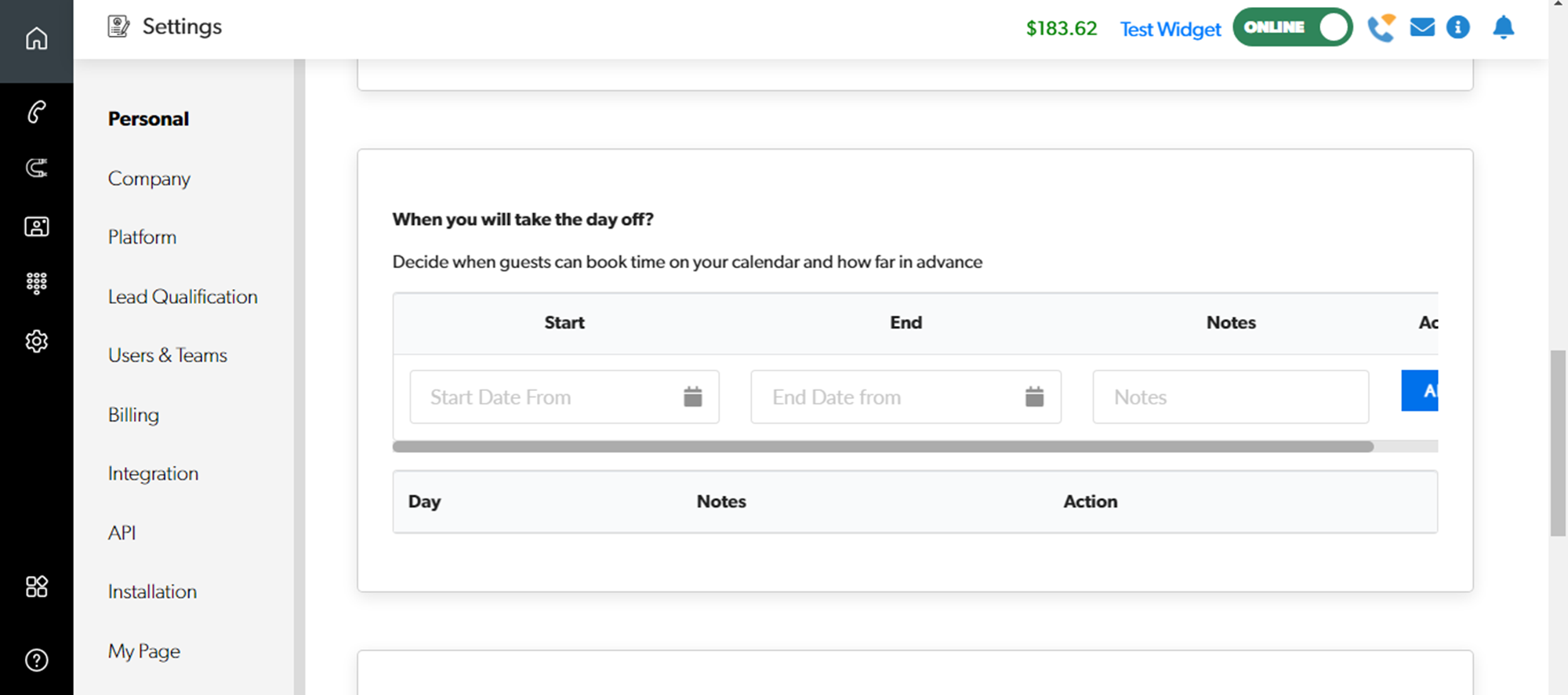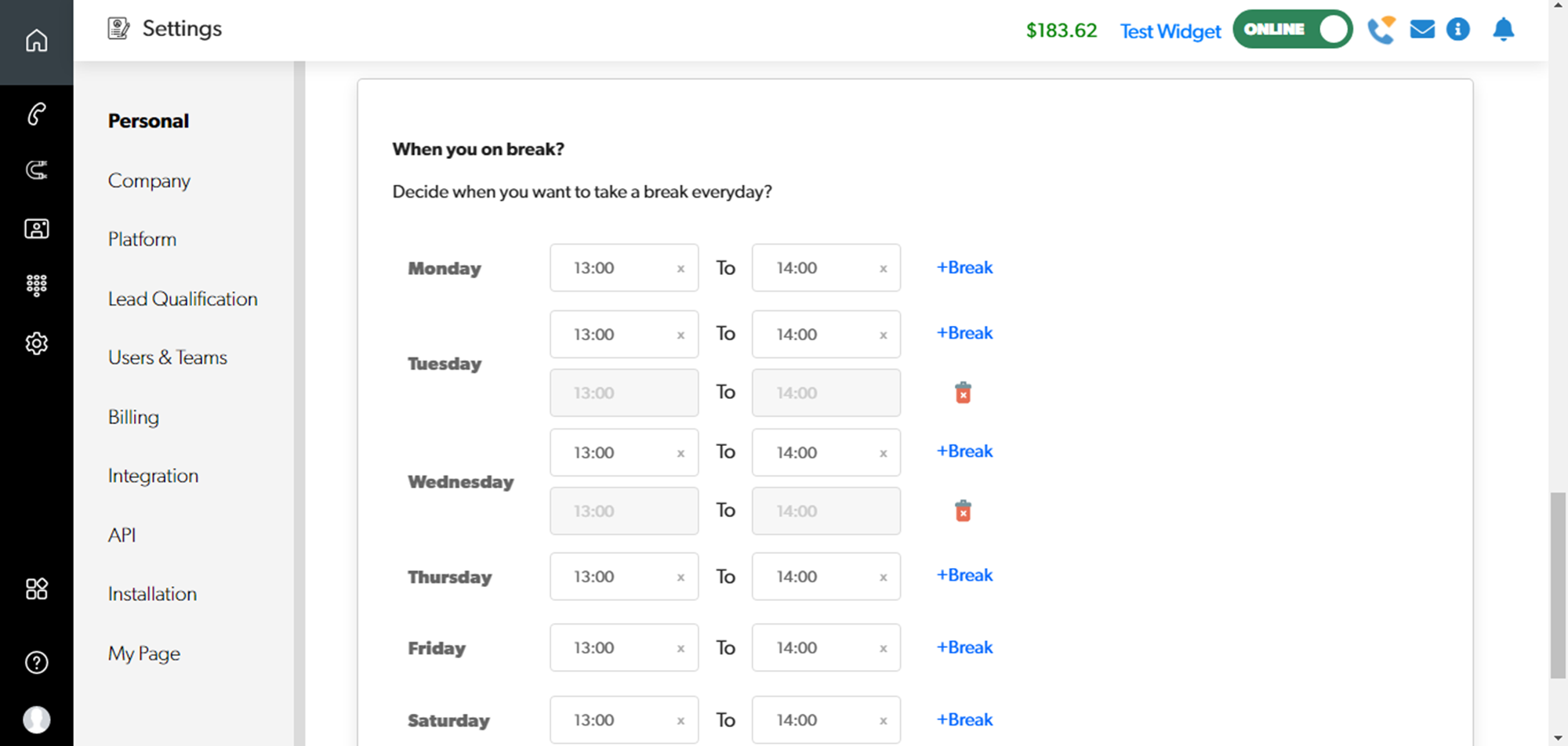 Follow Settings > Personal > Working Hoursarrow-up-right