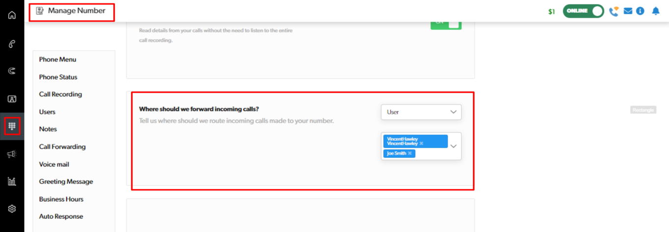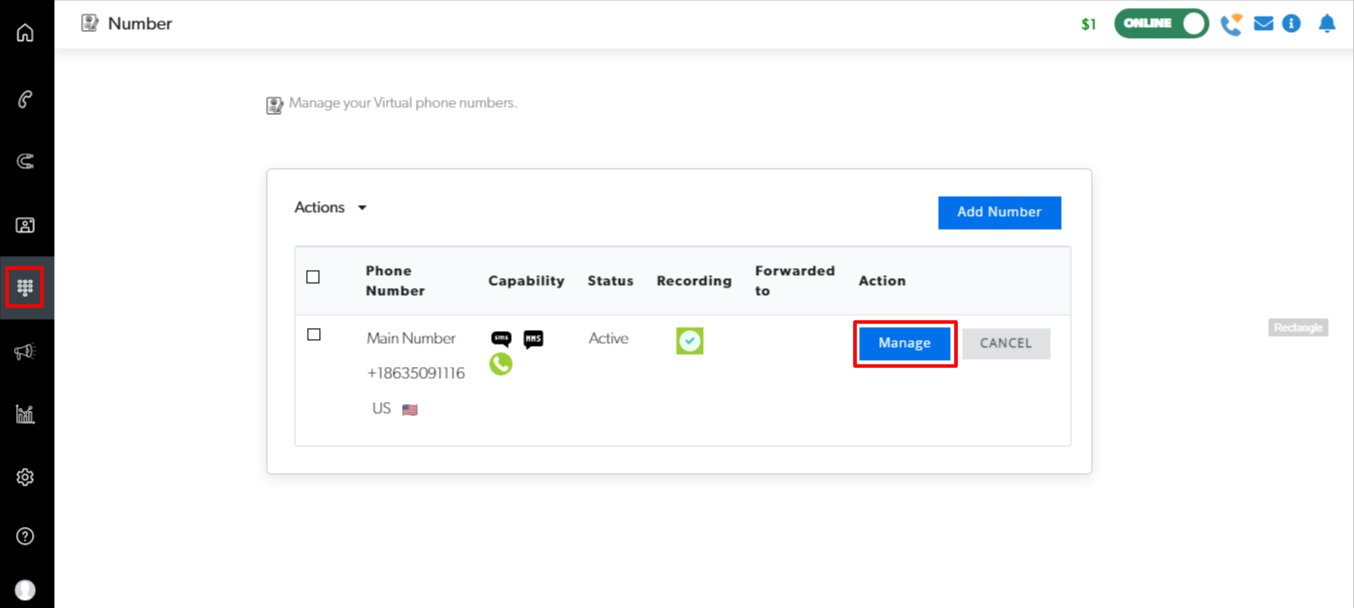 This section requires additional permission settings, if you cannot access, contact your Administrator. Your assigned virtual number will be configured for you.