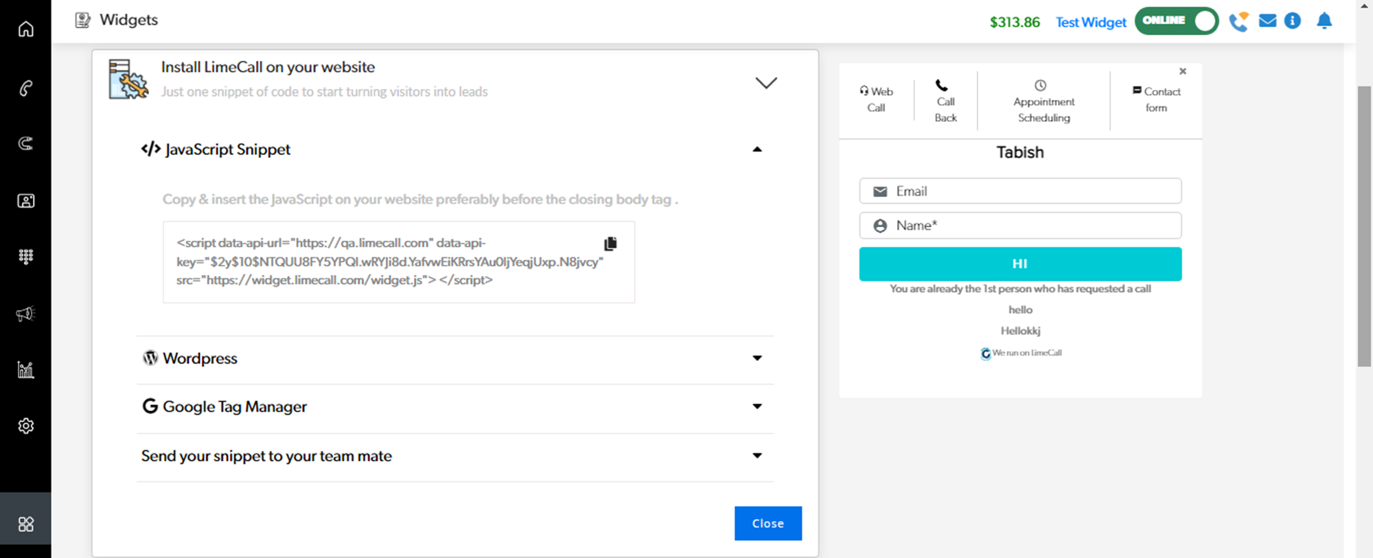 Ensure the trusted domain is entered and identical to the address of the website you have installed the LimeCall widget on.